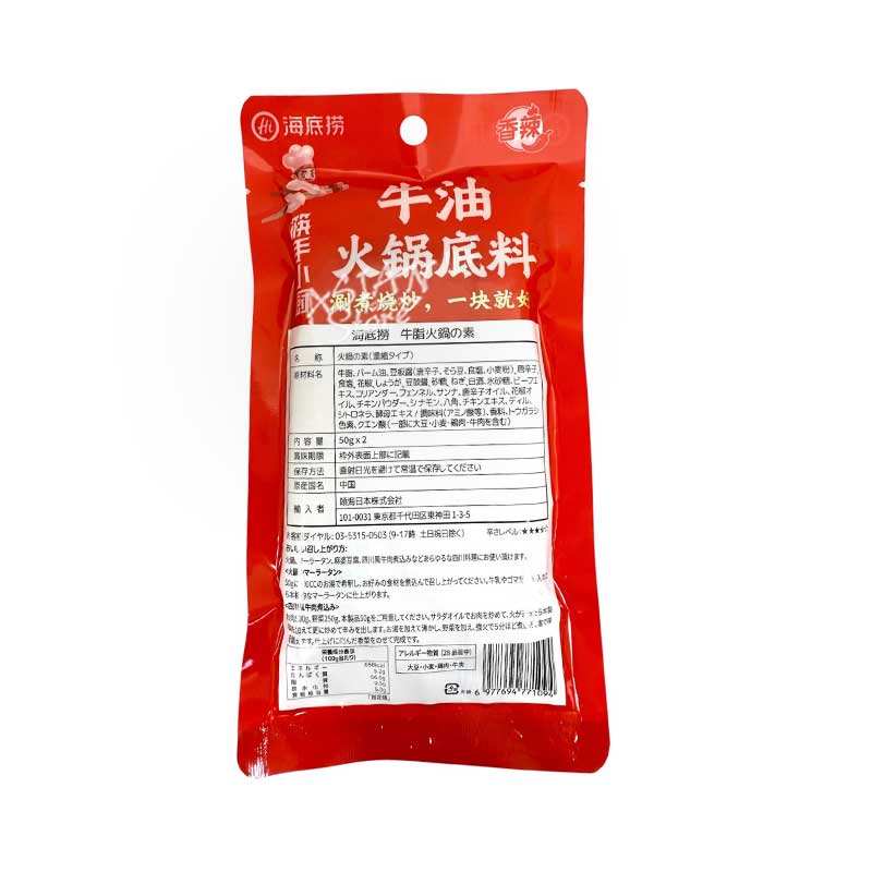 【常温便】海底労 牛脂火鍋の素(2つ割れ)/海底撈 香辣牛油火鍋底料 100g(50g*2個)