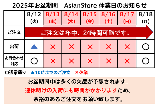 メーカー休業に伴い、2025/08/13(水)~ 2025/08/17(日)の間、出荷を行いません。