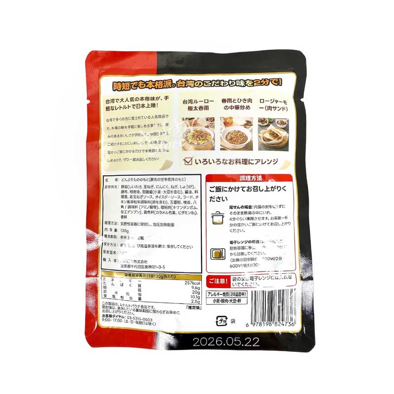 【常温便】海底労 本格屋台風 台湾ルーローハン(レトルト)/海底撈 台湾魯肉飯 130g(1人前)