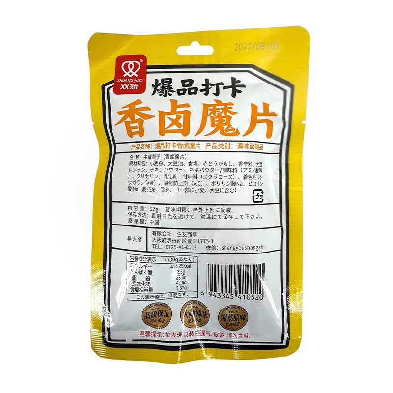 【常温便】中華菓子 双嬌 素研所 香鹵魔片(黄)/双交 香鹵魔片 62g 調味面制品