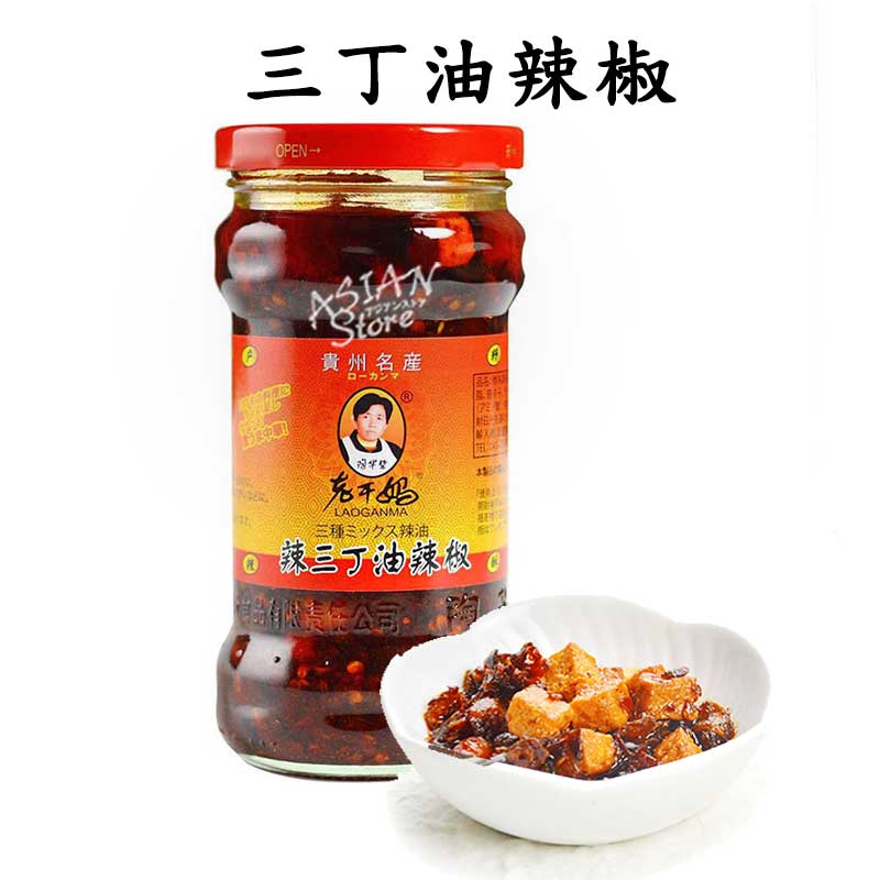 【常温便】ラオガンマー三種ミックスラー油(ユーラージャオ)/老干媽辣三丁油辣椒280g